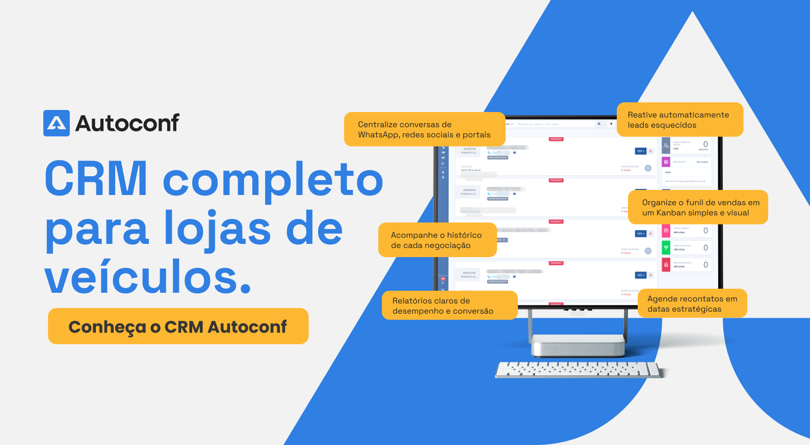 O CRM do Autoconf foi desenvolvido dentro de uma loja de veículos — e isso faz toda a diferença.