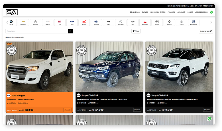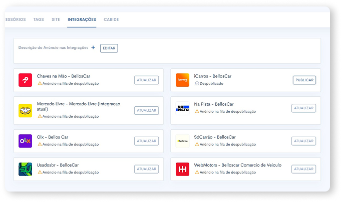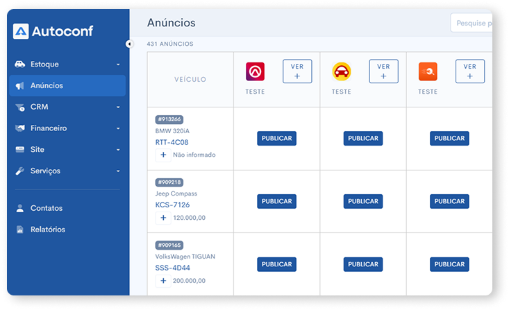 Tenha um site de alta performance, otimizado para o Google e integrado a todos os portais. Publique seu estoque em um clique e gerencie tudo sem depender de programador.